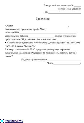 Если возникают любые проблемы и на вопрос «Можно ли отказаться от Манту?» руководство образовательного учреждения отвечает негативно, следует написать отказ и в письменной форме направить его директору. Себе оставить копию.